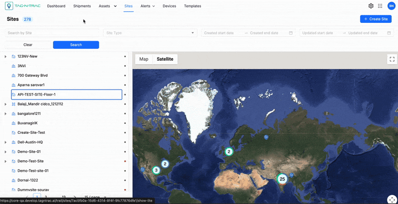 | Filter by Site Type | Select a site type from the dropdown (e.g., Facility, Floor, Zone, Hub). |