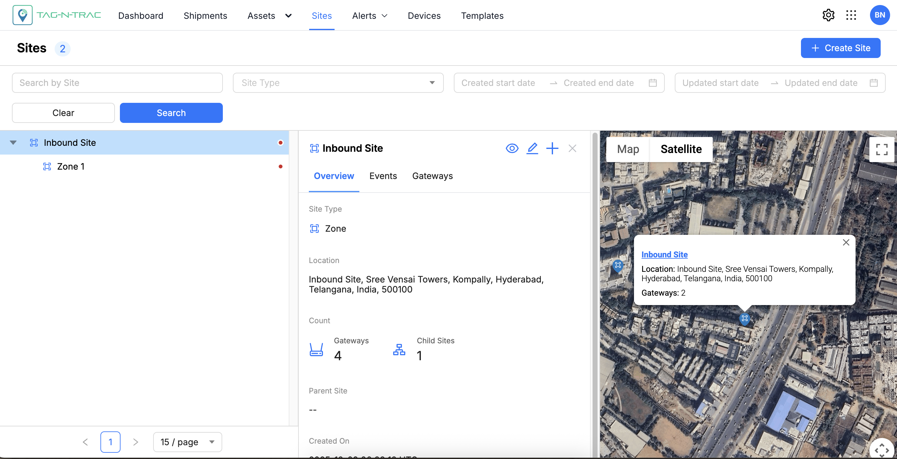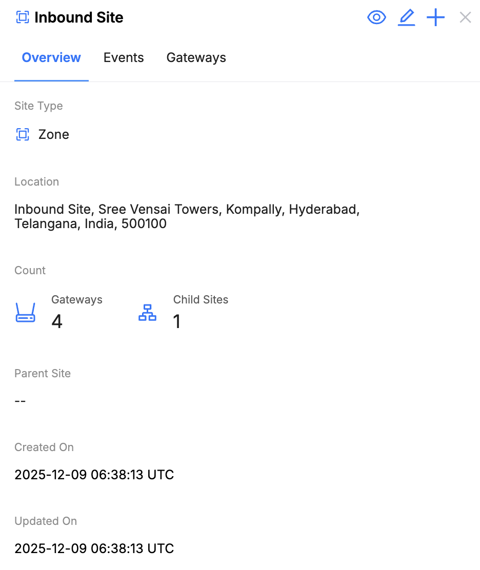 - Gateway and Asset Count: Indicates how many gateways and assets are associated with the site.